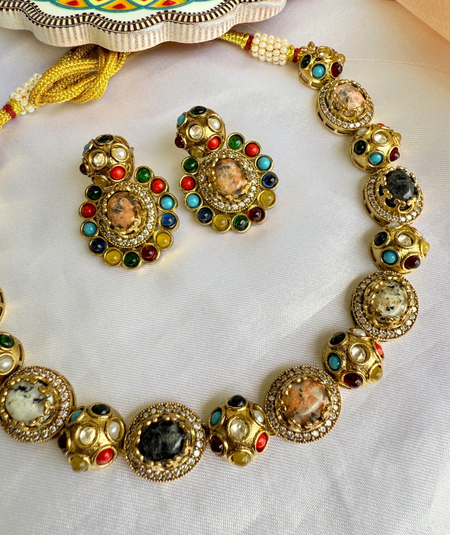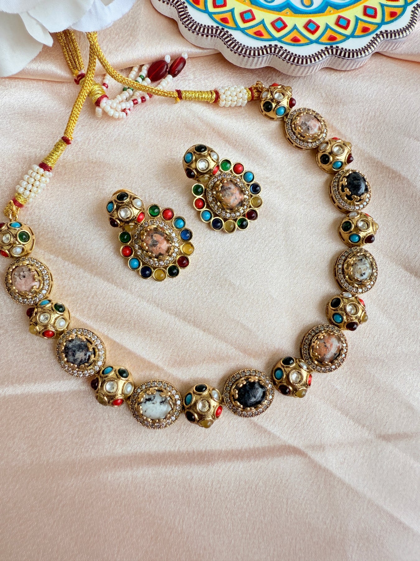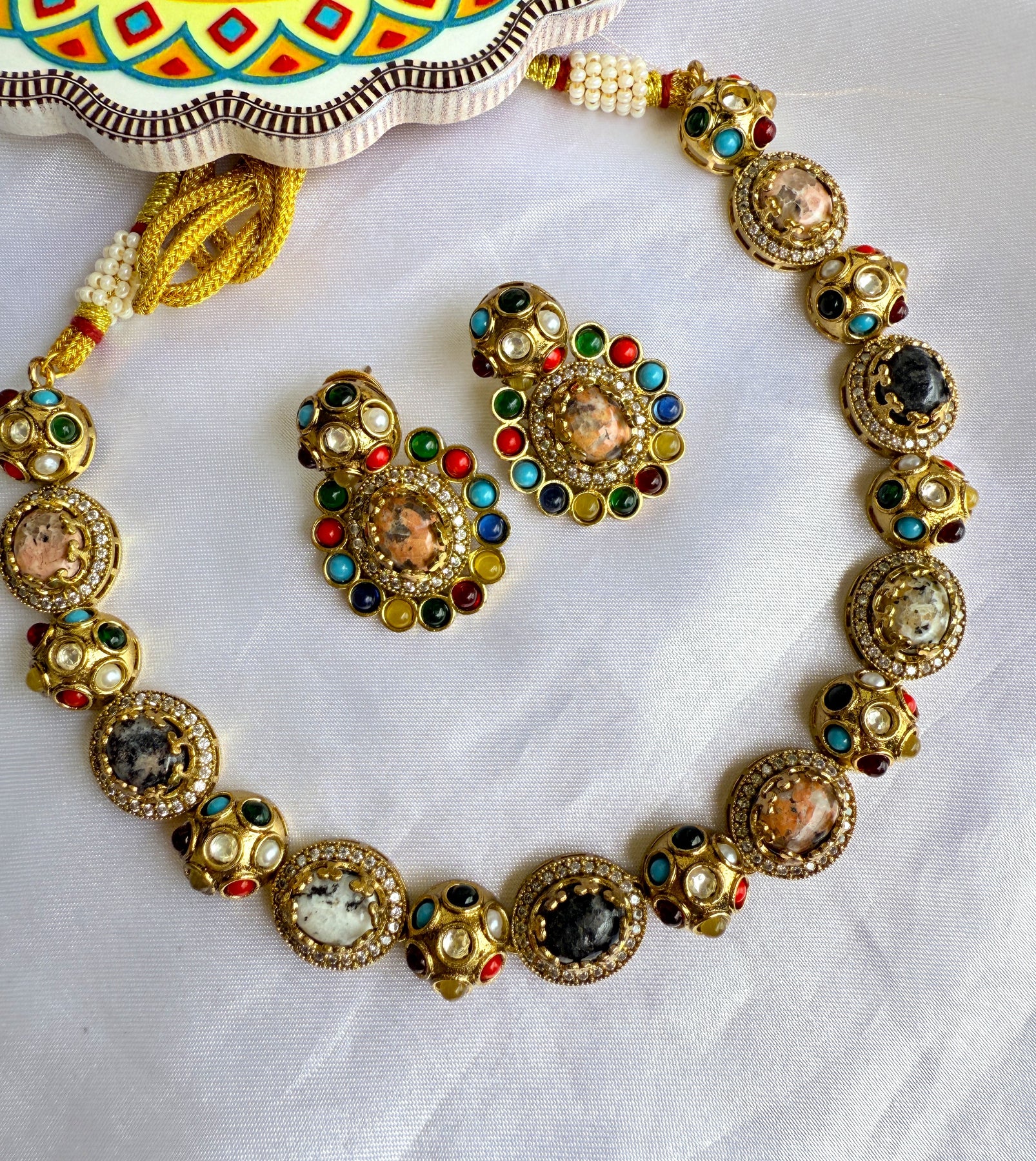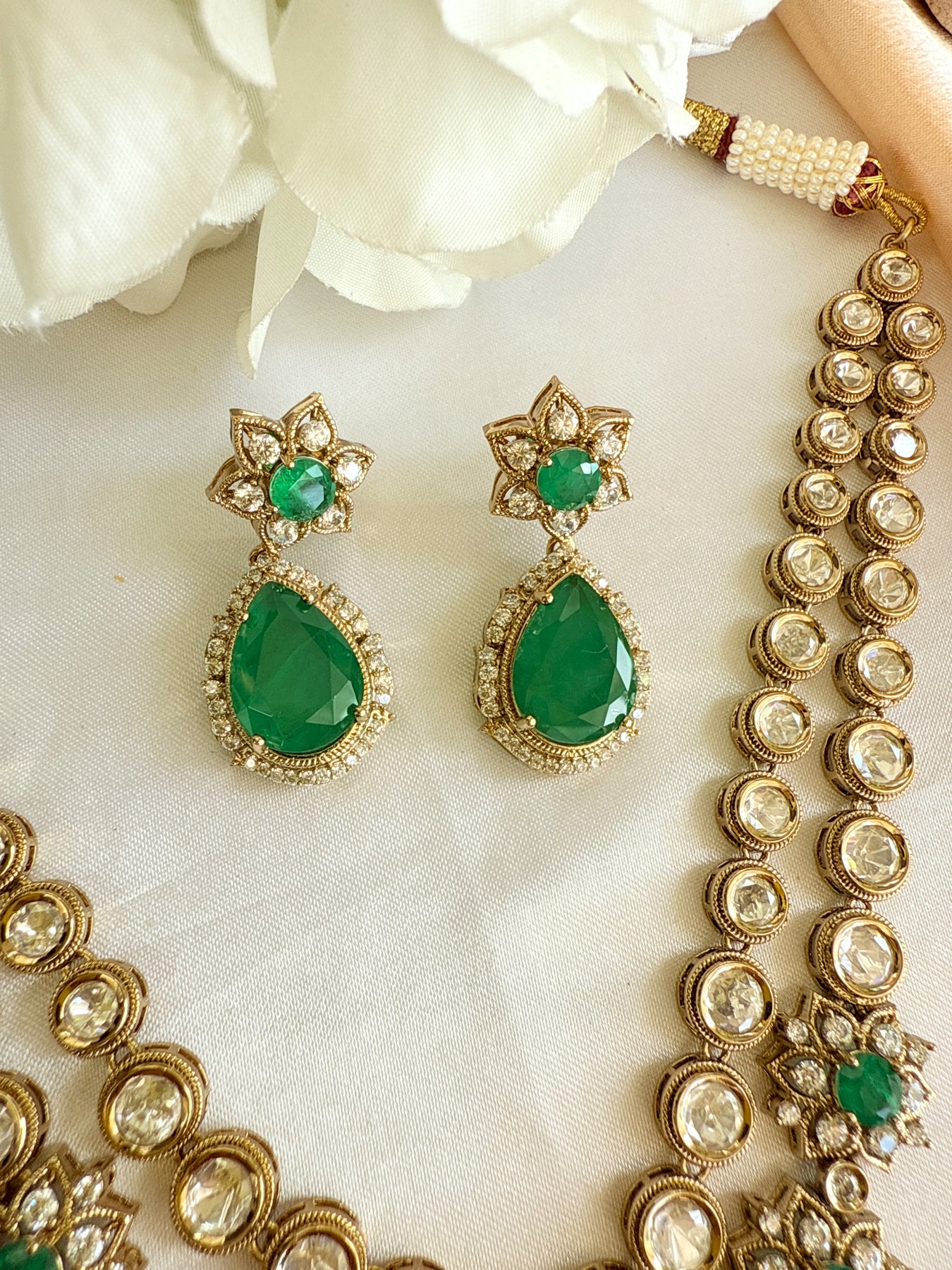 This necklace set is more than just an accessory; it's a statement of style and a celebration of superior craftsmanship. Whether paired with a traditional lehenga or a modern fusion outfit, it is guaranteed to draw compliments and elevate your ensemble.