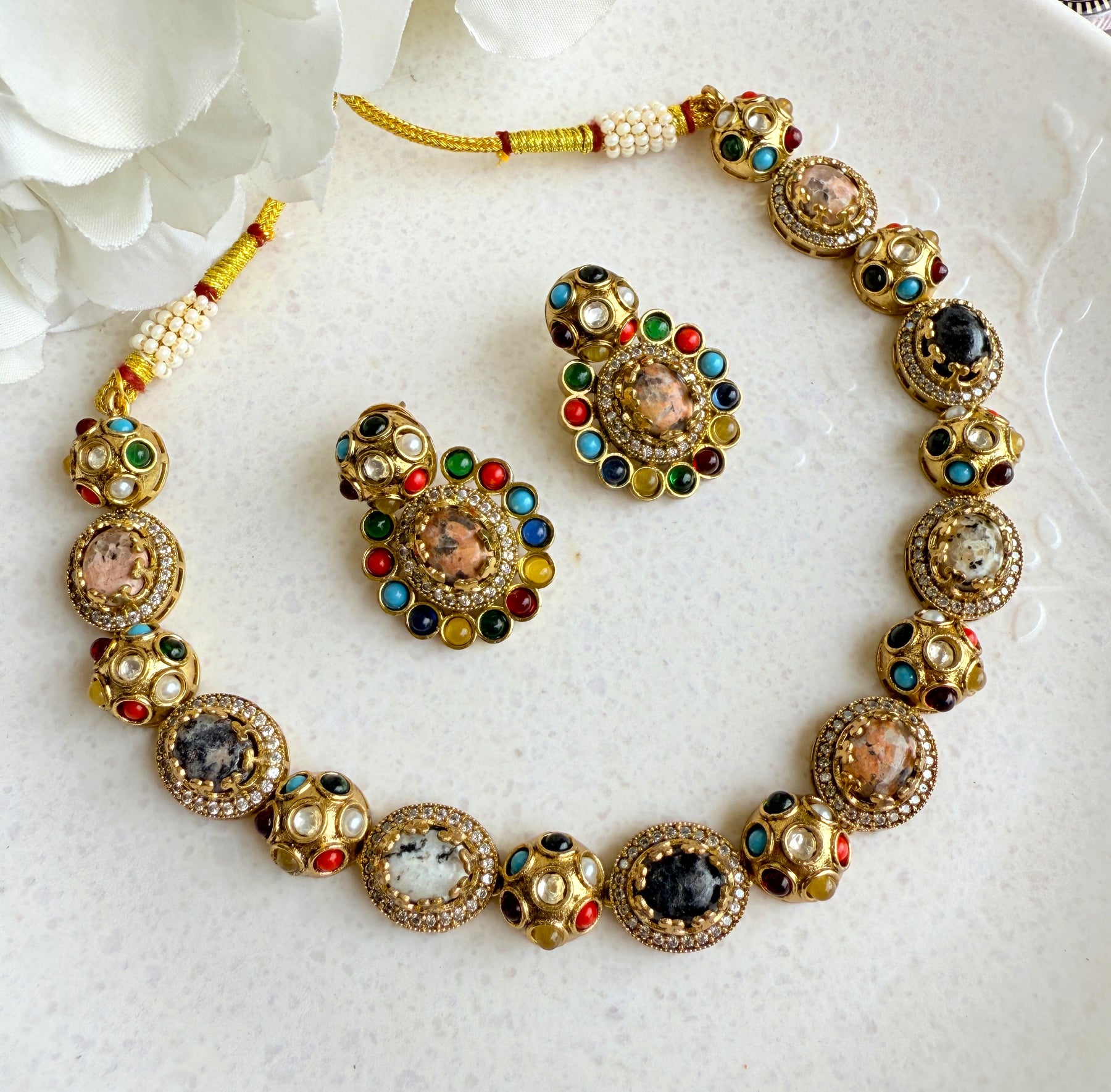 Adhira Premium Kundan And Doublet Stone Necklace Set