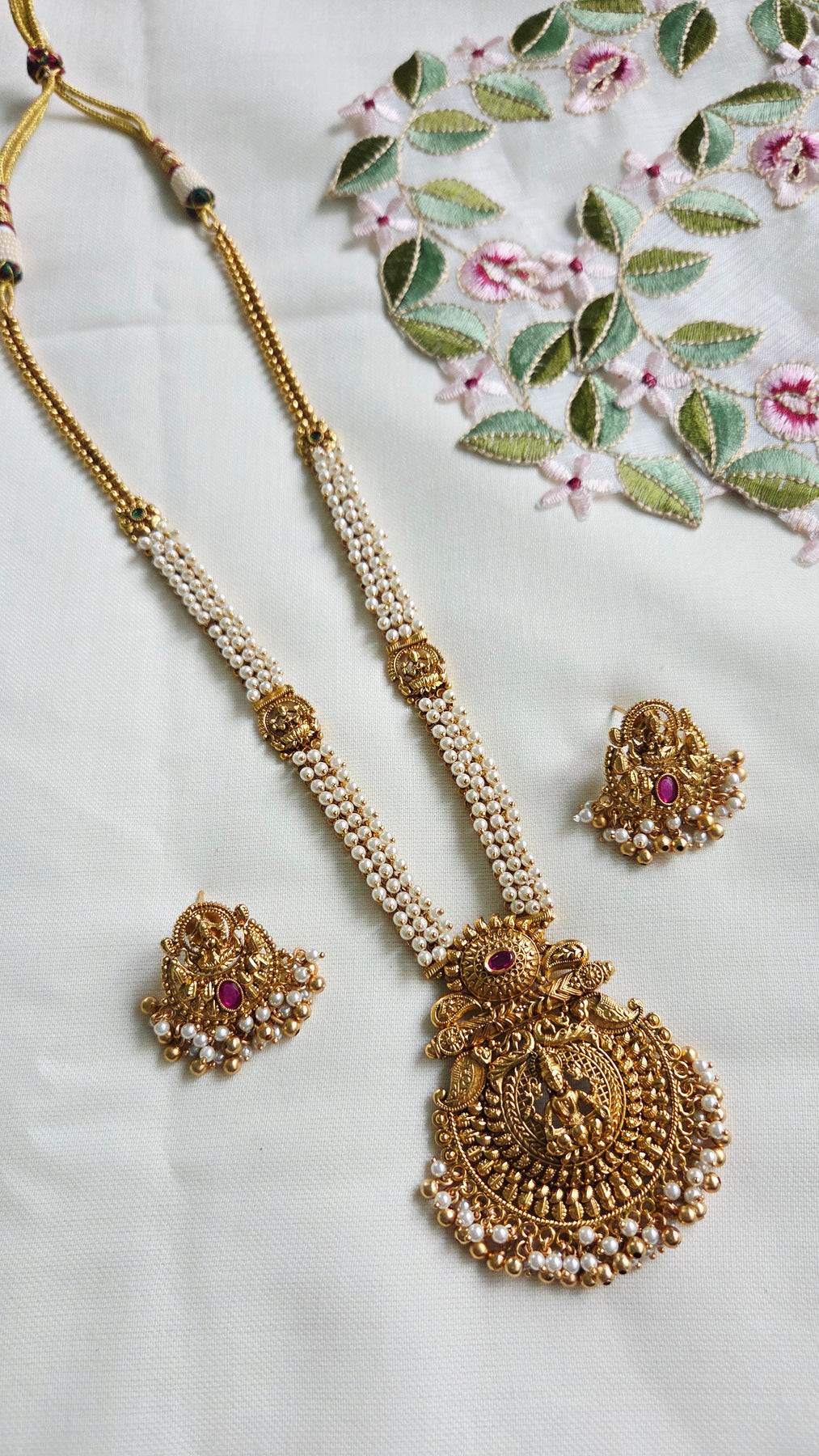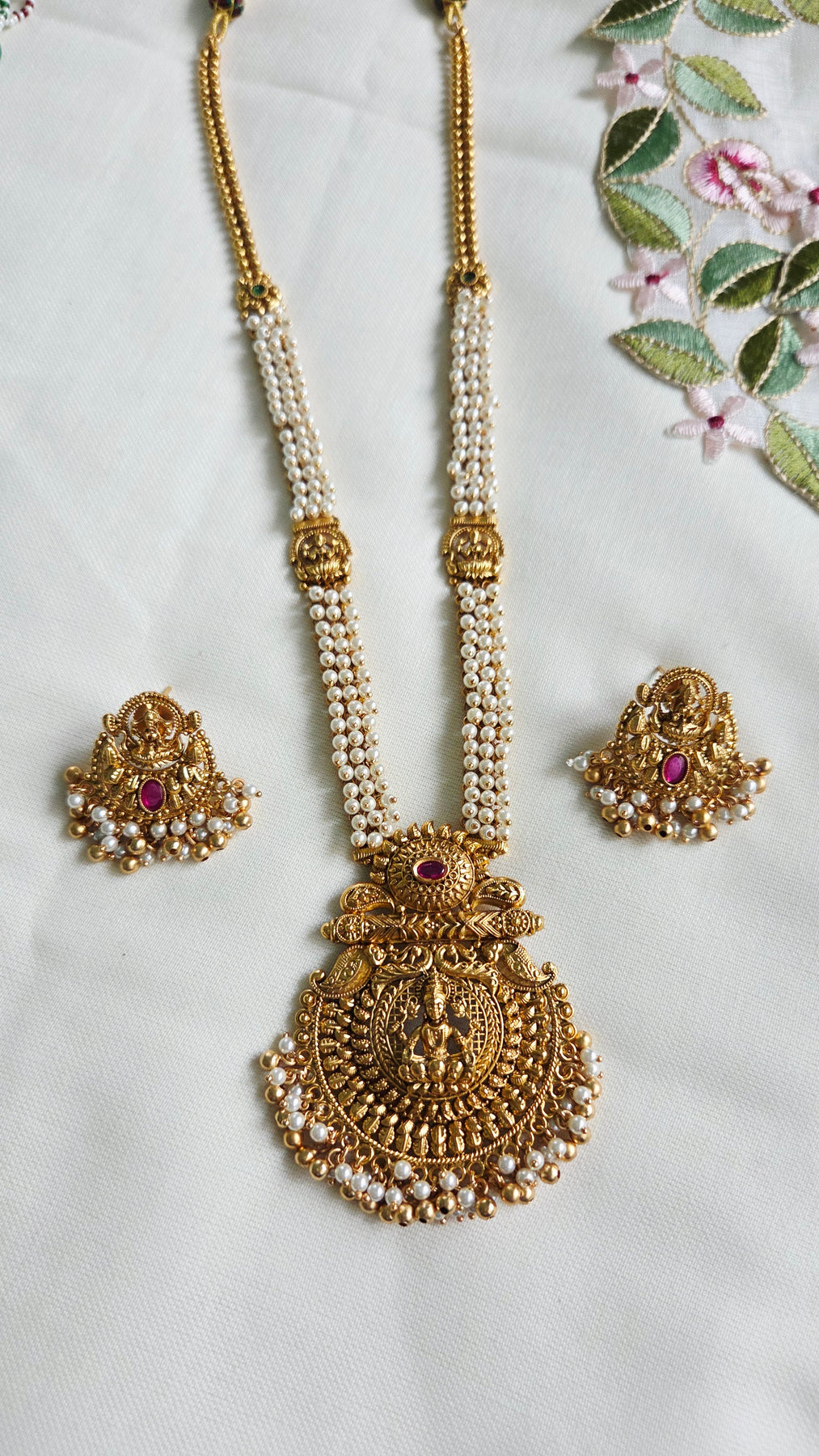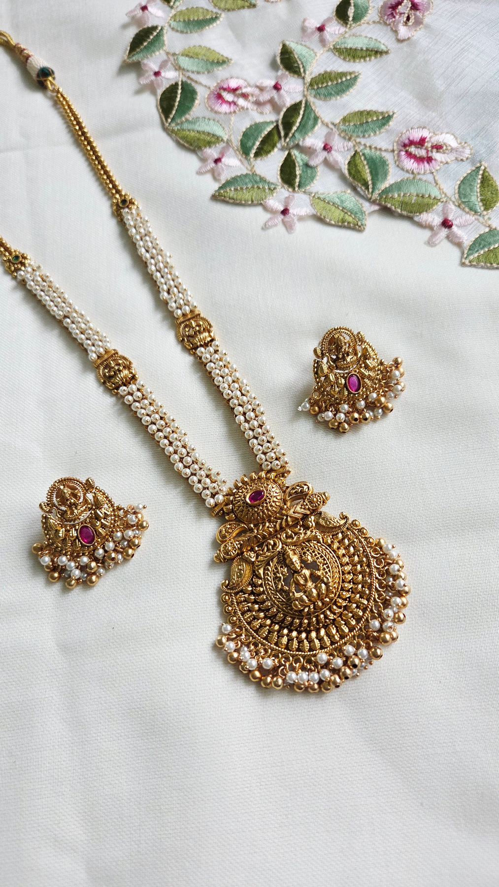 Perfectly paired with matching earrings, this set is ideal for weddings, festive occasions, and cultural celebrations — bringing out your inner goddess with every wear.