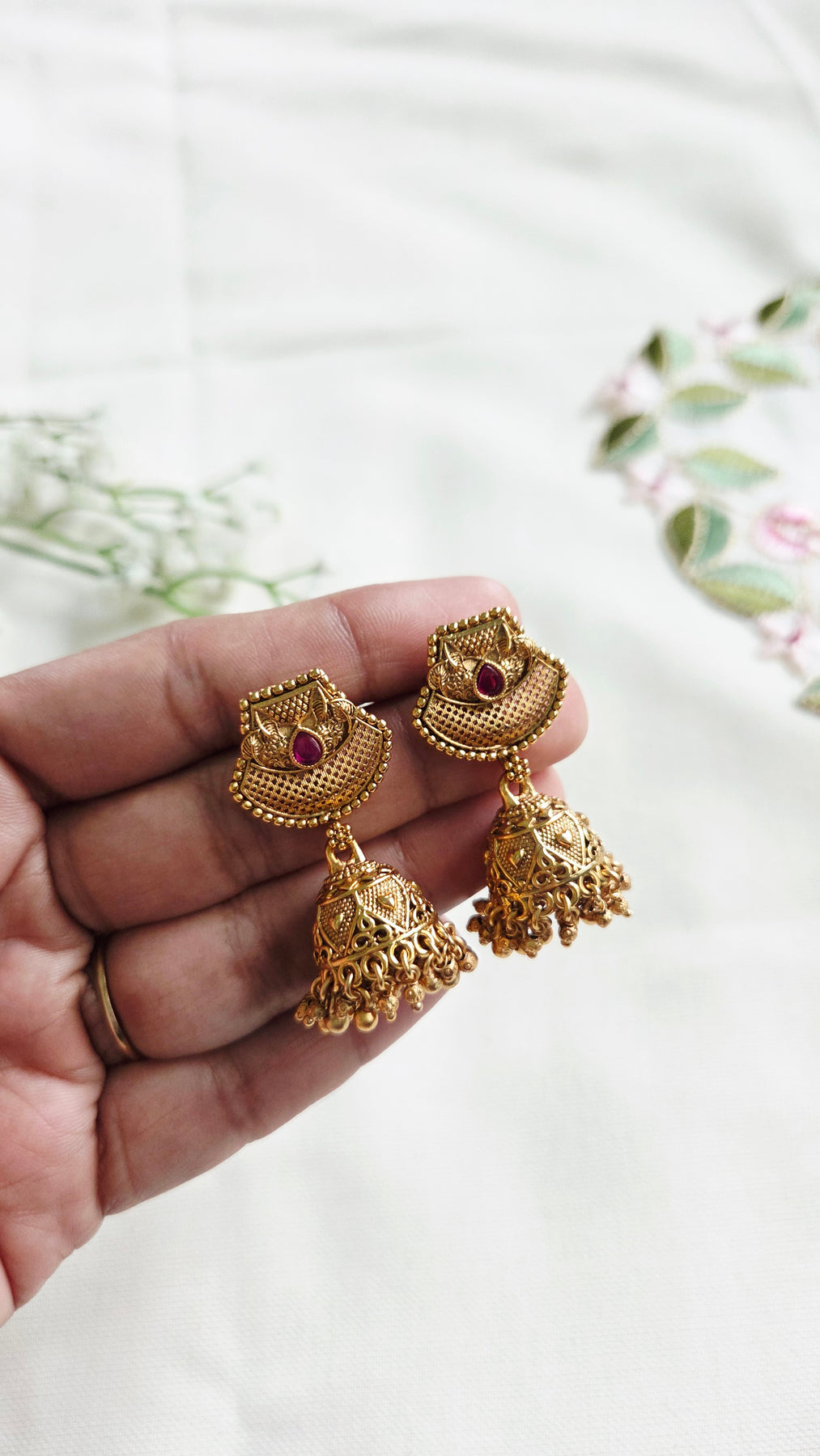 Paired with matching temple-style earrings, this set brings together heritage, craftsmanship, and timeless charm — ideal for those who love classic traditional jewellery.