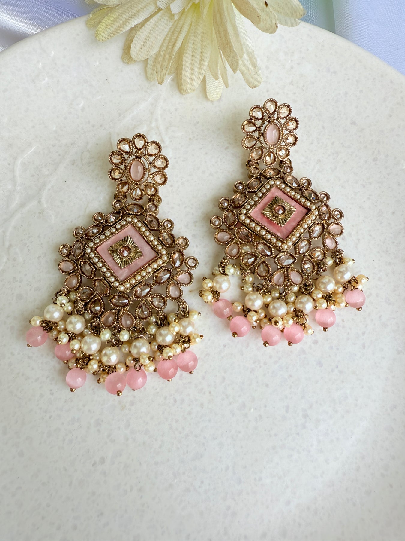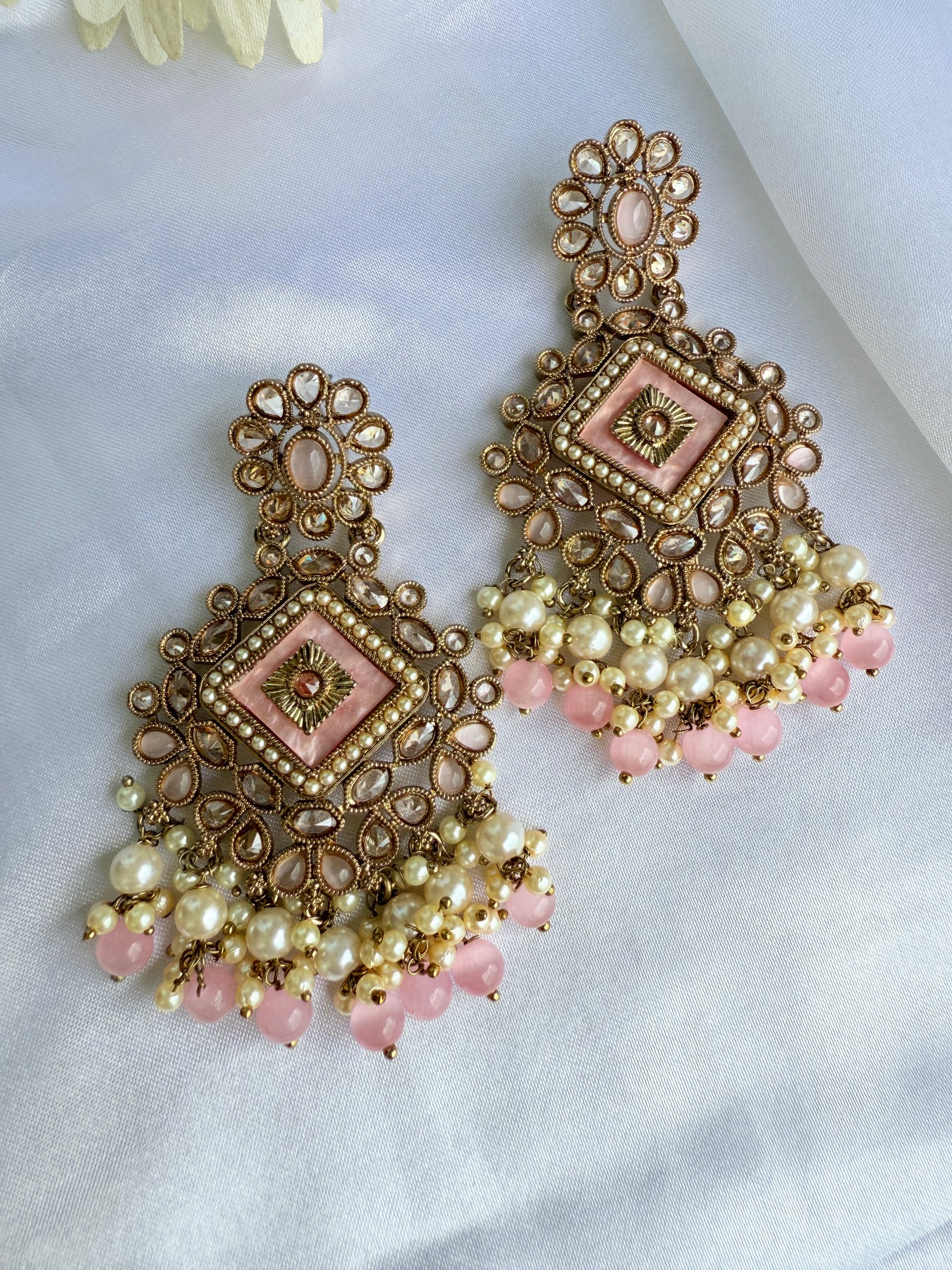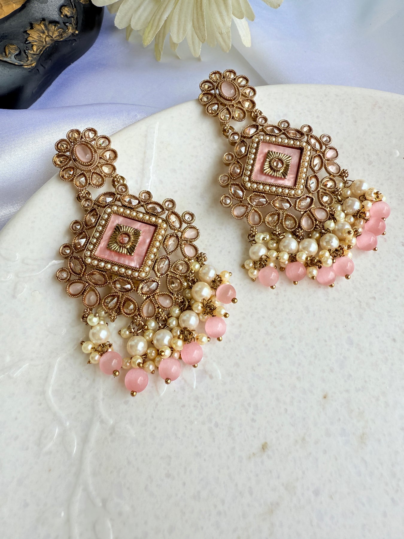 Bring a radiant charm to your festive look with the Inaya Pink Pearl Kundan Earrings. Crafted with intricate floral kundan detailing, a square centerpiece, and finished with delicate clusters of pearls and Pink beads, these earrings exude a regal yet refreshing vibe. Their vibrant hues make them the perfect pick for haldi, mehendi, or any joyous celebration, adding a graceful sparkle to your traditional attire.
